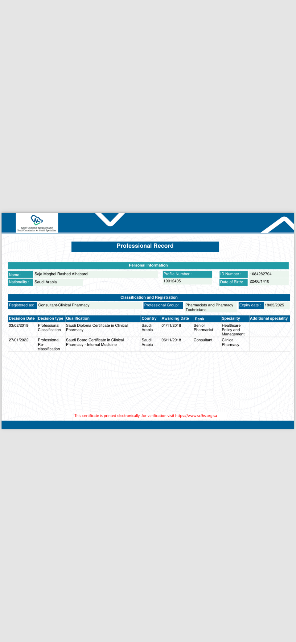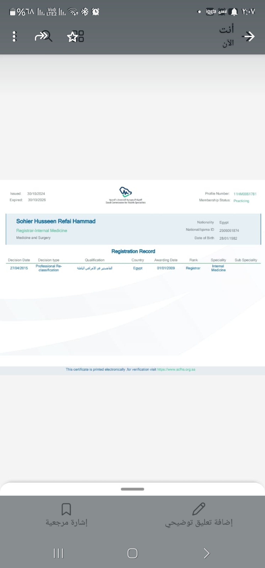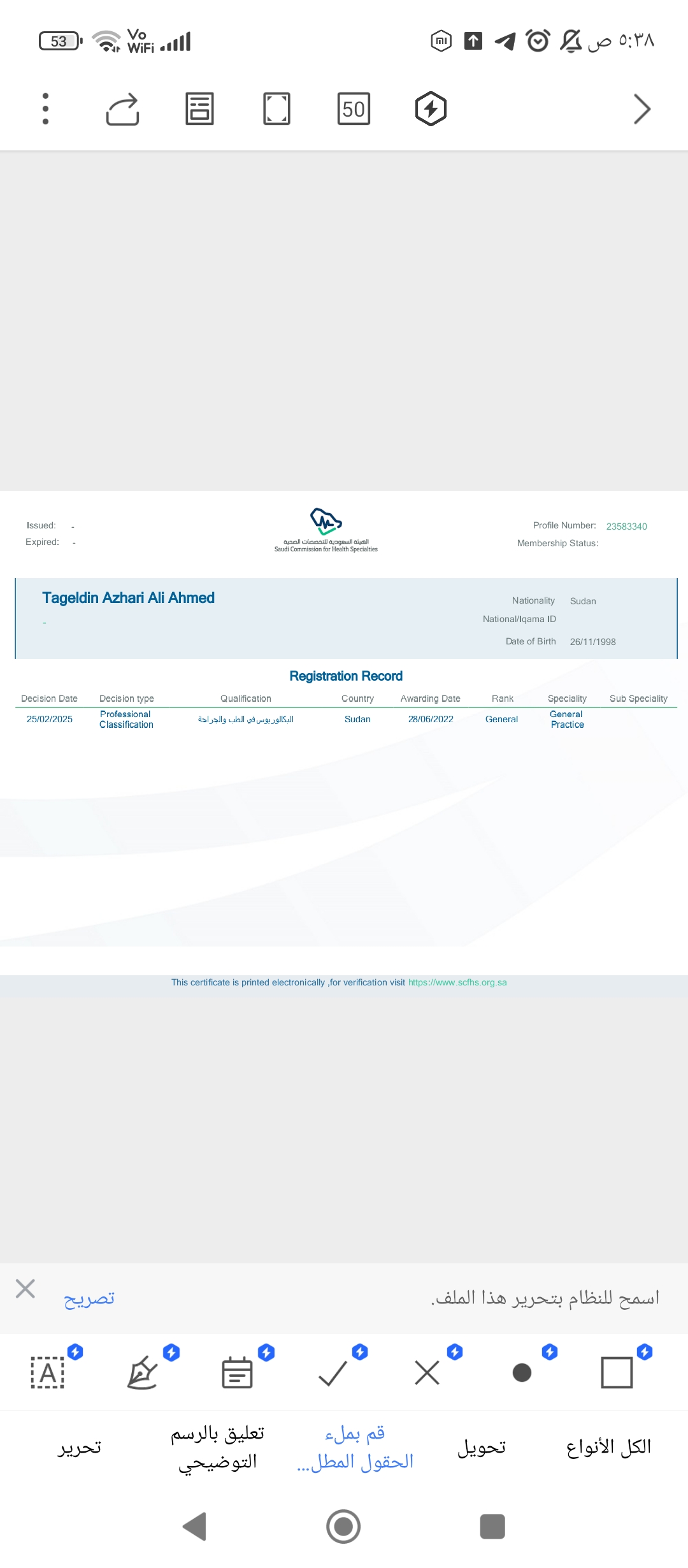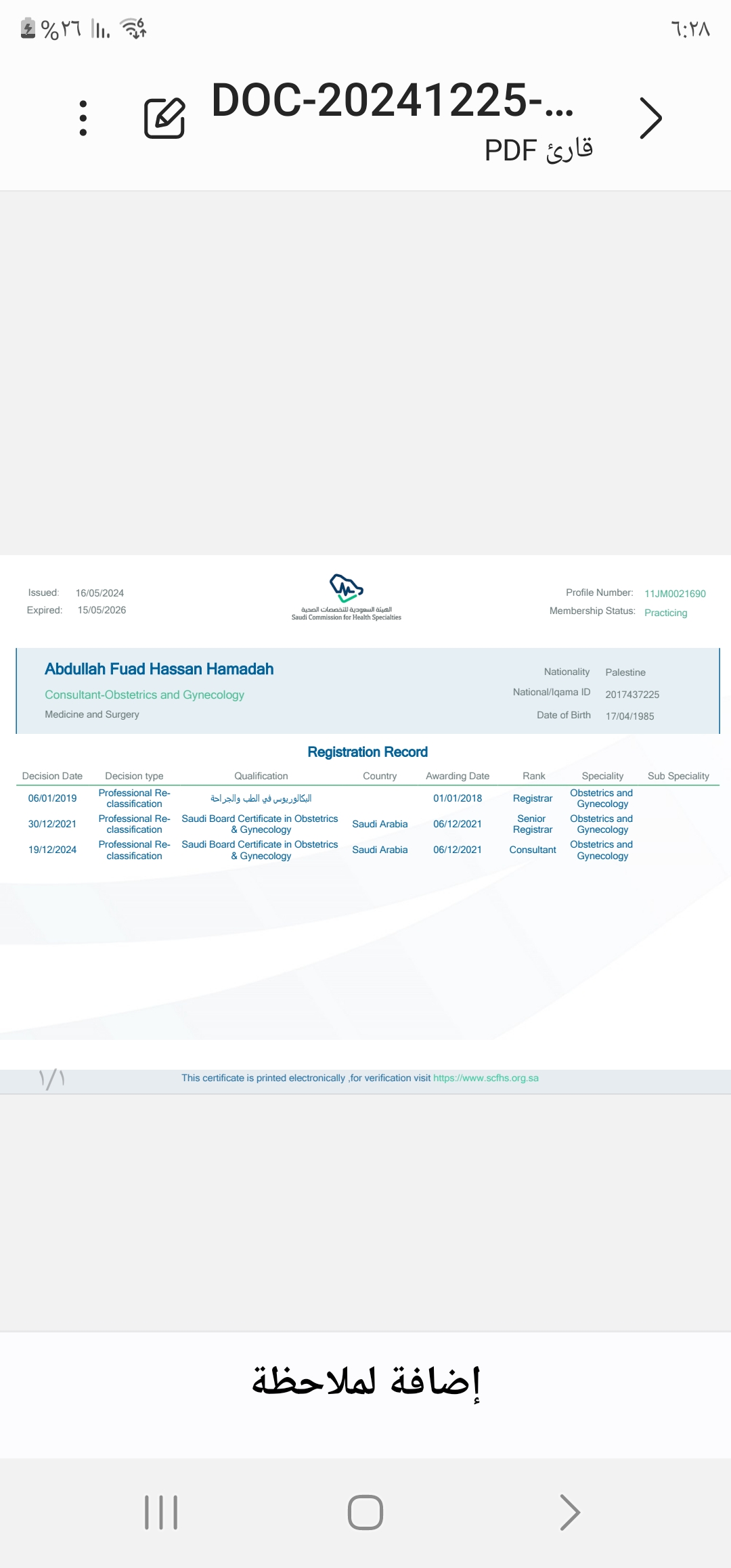 2/23/2025 1:27 PM 218186 شهاده التصنيف الصحي ٢٠٢٥.pdf