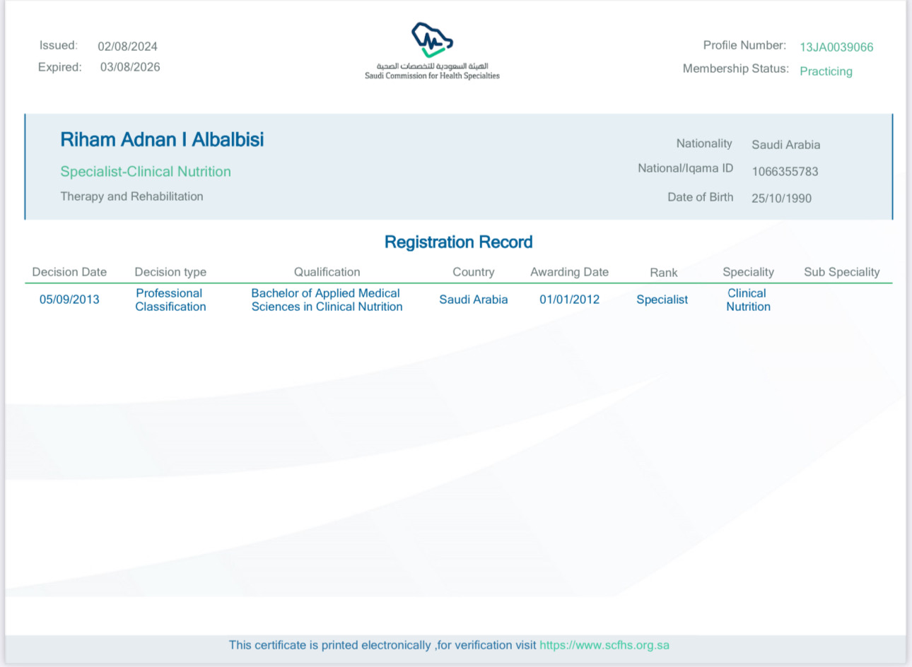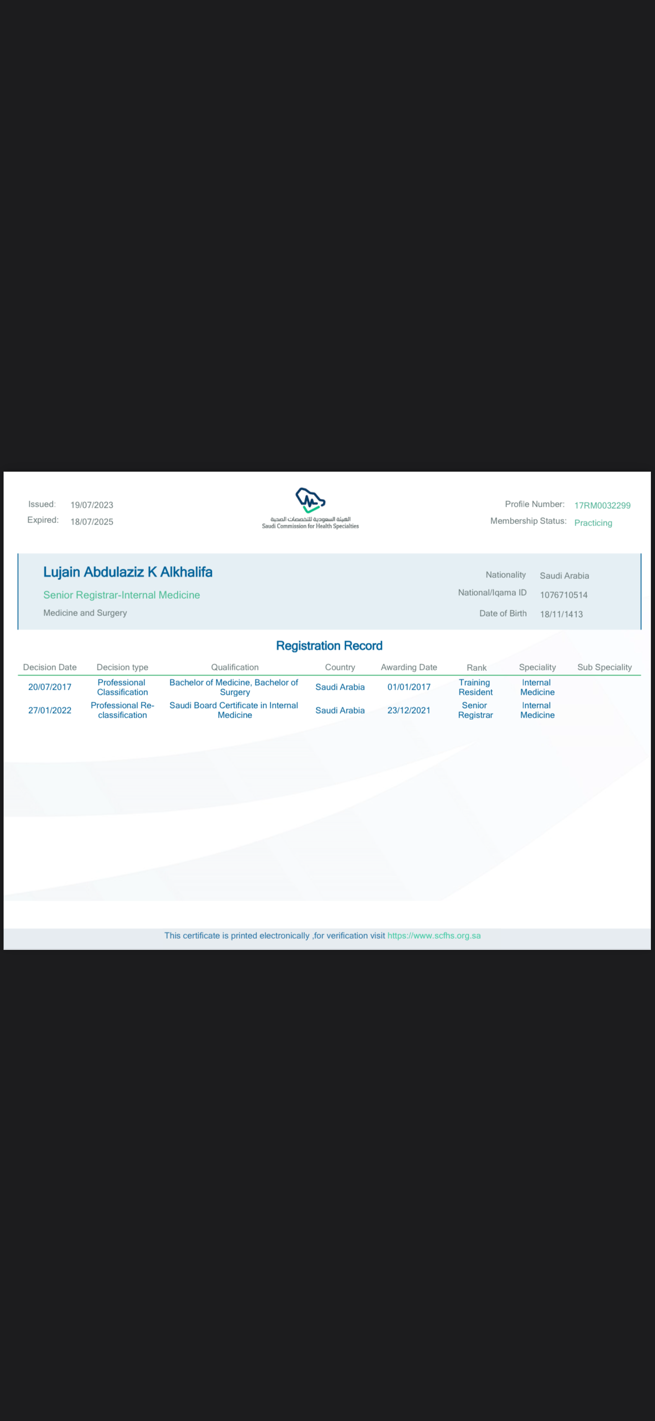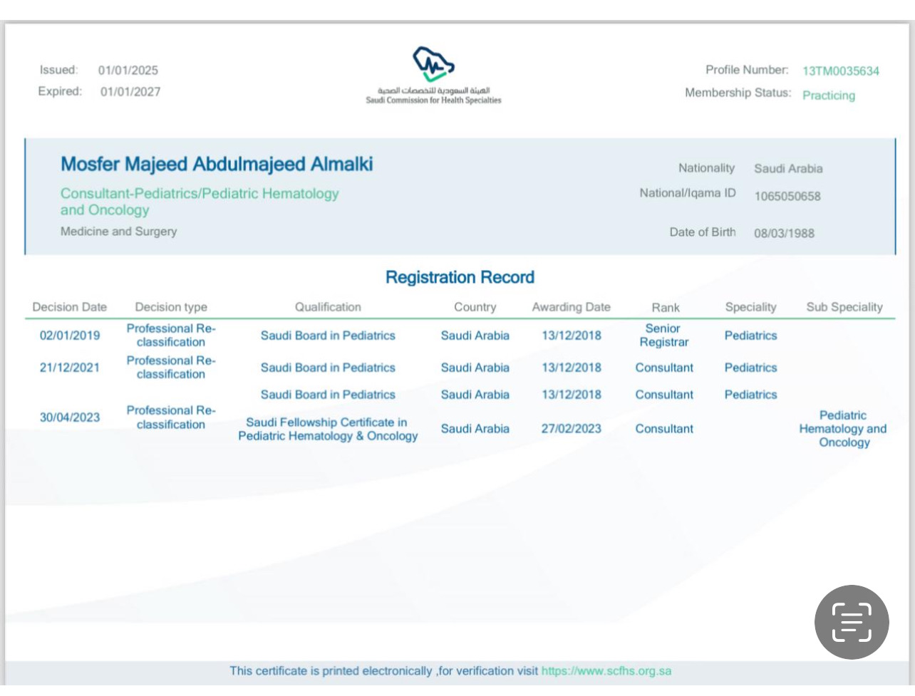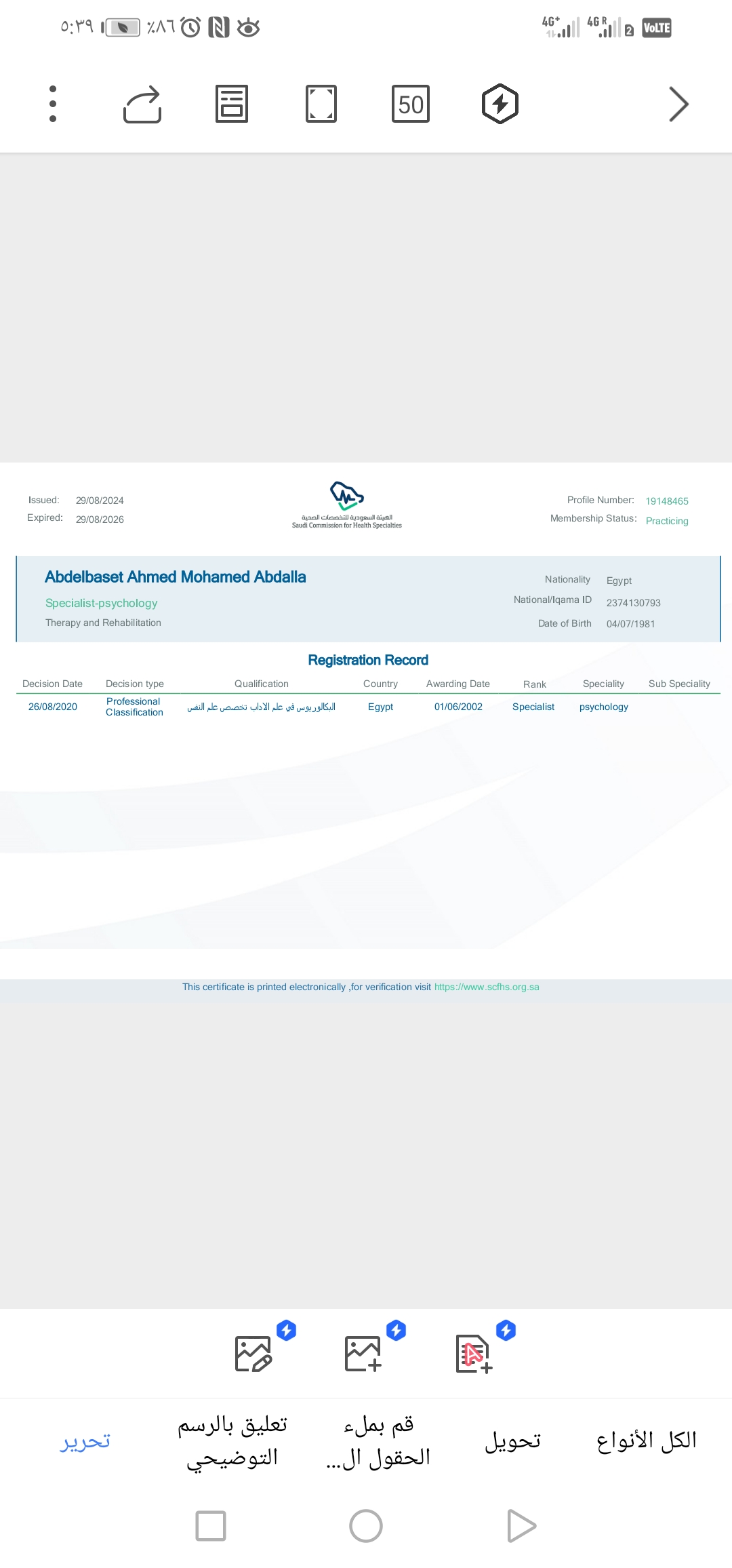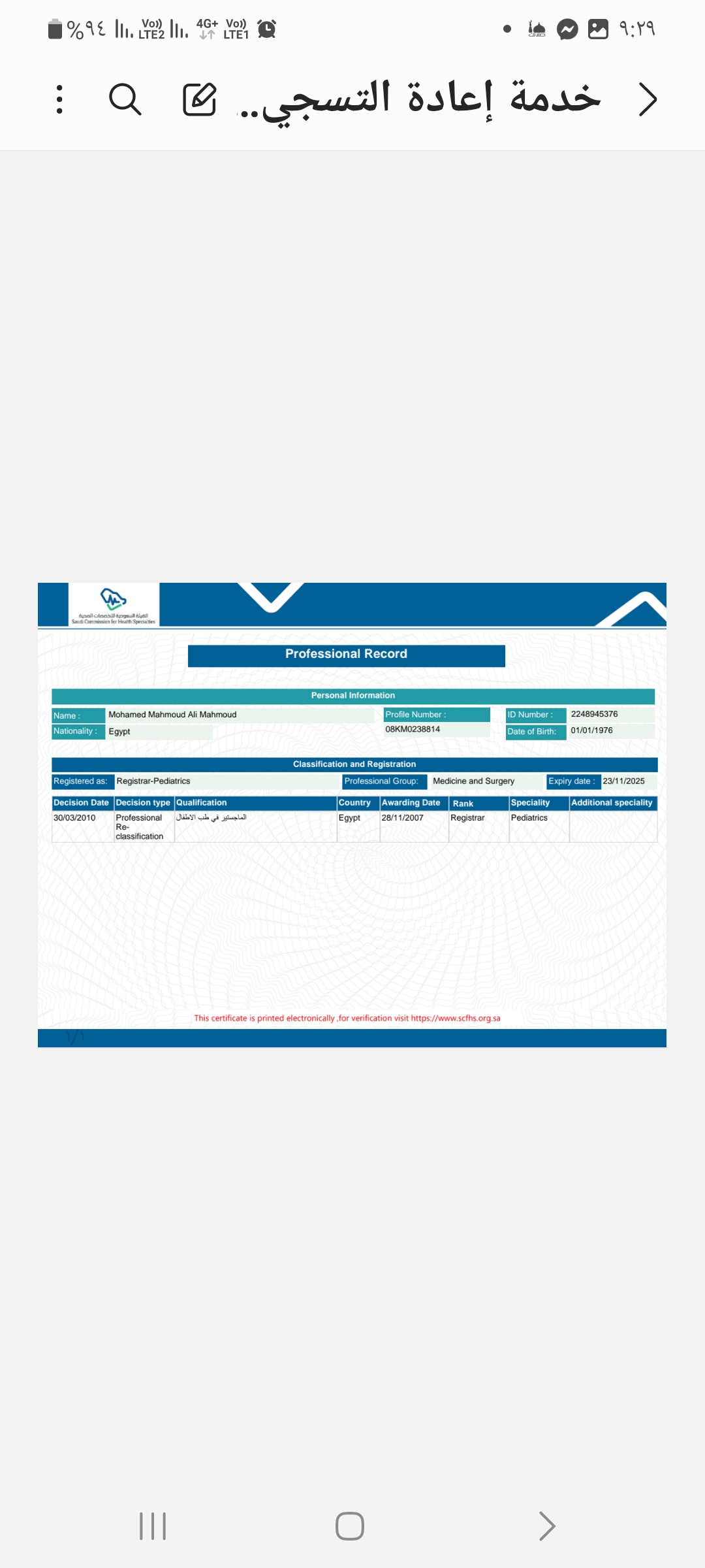 2/23/2025 1:27 PM 218186 شهاده التصنيف الصحي ٢٠٢٥.pdf